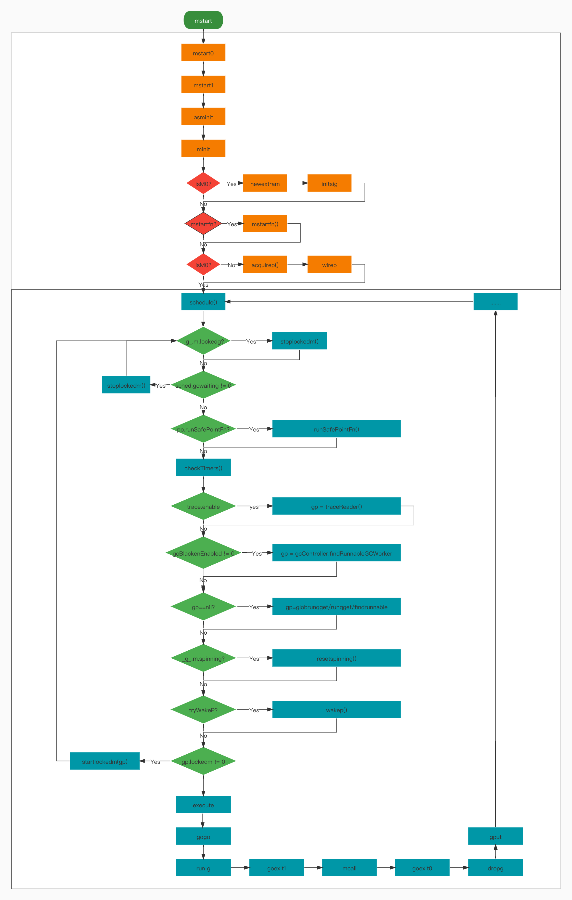 否则会调用 newosproc 来创建线程,从而调用 mstart。