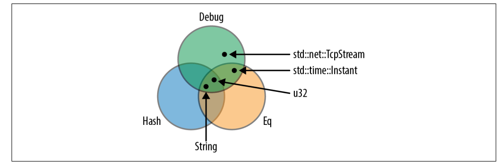 这个边界告诉Rust,Trait 对象可以不支持这个特定的关联函数。有了这些补充,虽然 StringSet 的 Trait对象仍然不支持new或from_slice,但可以创建它们并使用它们来调用.contains()和.add()。