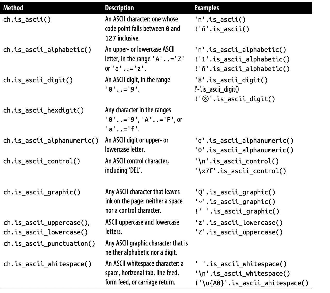 下标是一些专门用于 ASCII 字符的方法: