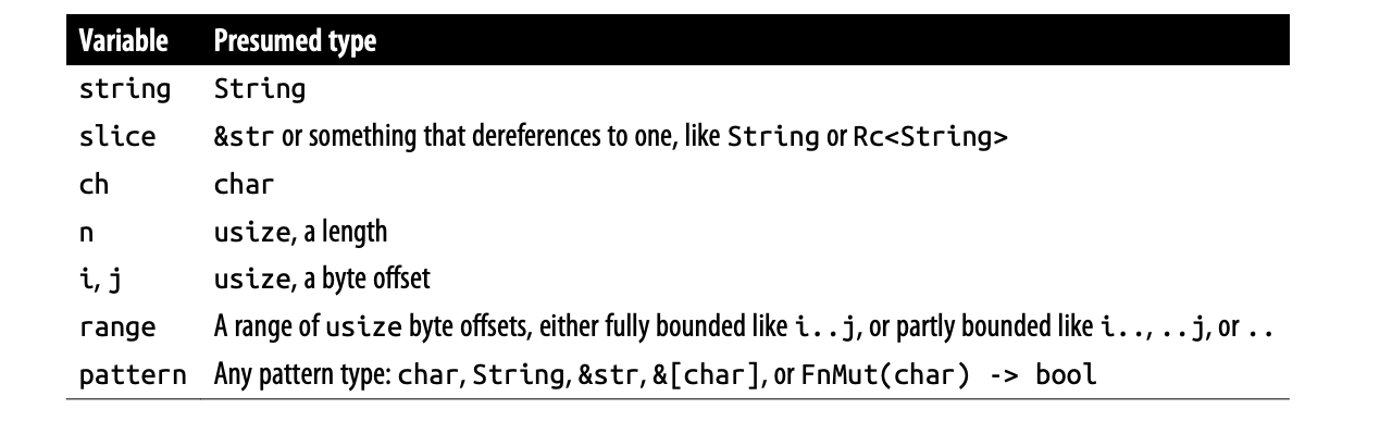 Rust 将文本处理方法放置在 str 或 String 上,具体取决于该方法是否需要可调整大小的缓冲区或内容只是为了使用适当的文本。由于 String 解引用就是 &str,因此在 str 上定义的每个方法也可以直接在 String 上使用。
